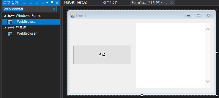 저처럼 대충 모양에 맞게 WebBrowser를 추가합니다.