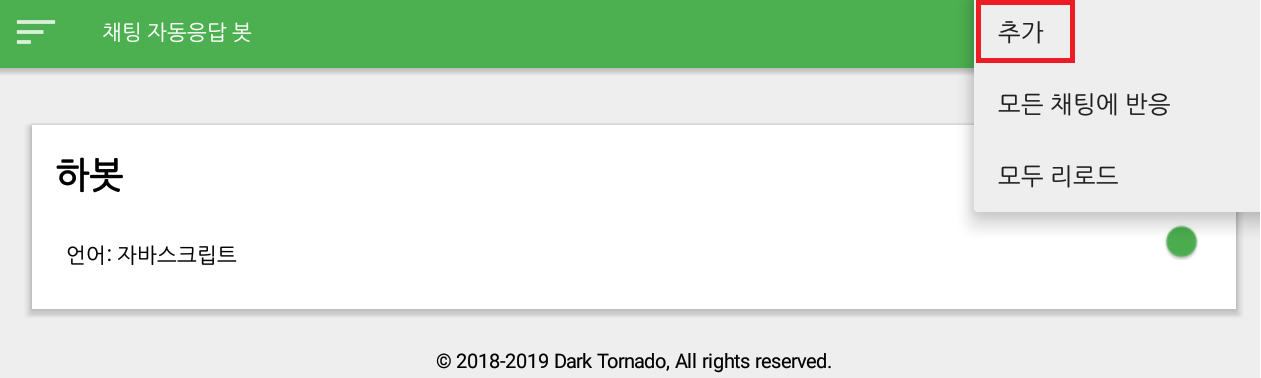 종류/언어 : 지금은 처음이니까 "단순 자동응답"을 선택해 주도록 합시다.